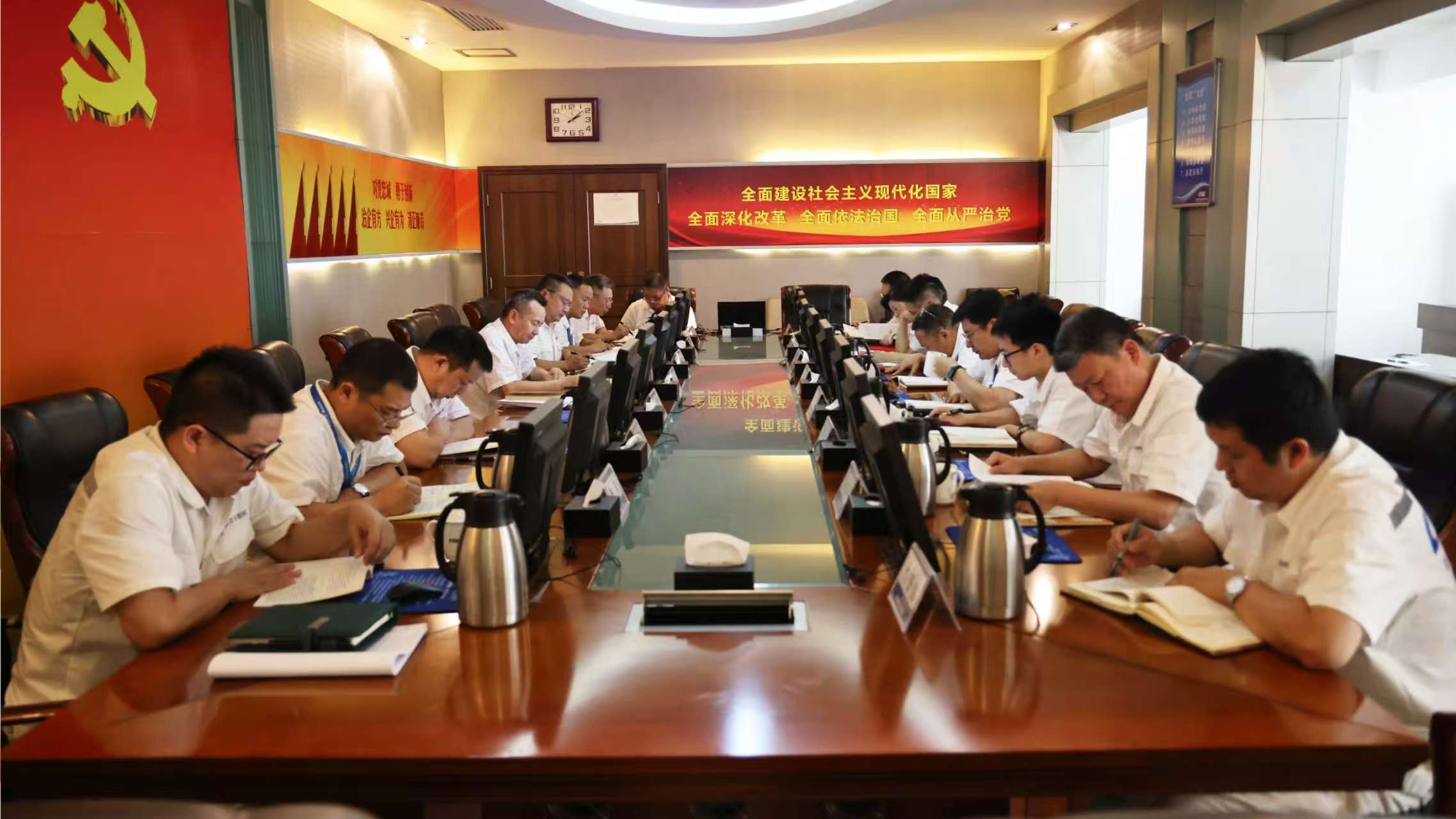 7月12日,中船集團(tuán)武漢船機(jī)黨委召開深入貫徹中央八項規(guī)定精神學(xué)習(xí)教育讀書班(第四期)暨黨委理論學(xué)習(xí)中心組學(xué)習(xí)會議。公司黨委理論學(xué)習(xí)中心組成員參加學(xué)習(xí)會議,公司黨委副書記、總經(jīng)理程立兵主持學(xué)習(xí)會議。